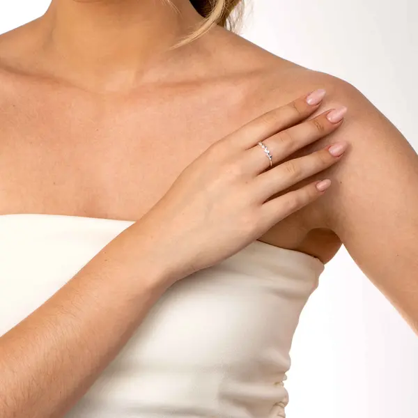 Anel Prata Folhas com Zircônias