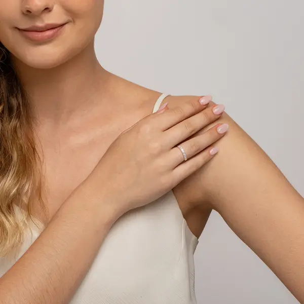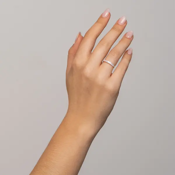 Anel Prata Meia Aliança Com Zircônias Brancas