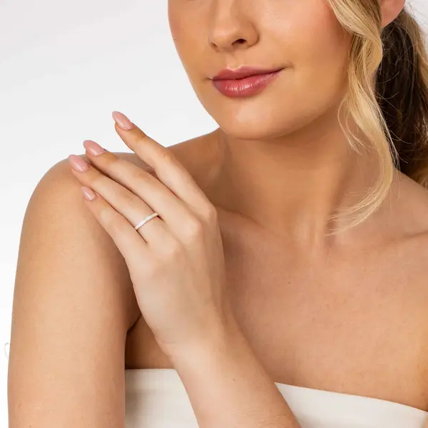 Anel Prata Meia Aliança Cravejada em Zircônias