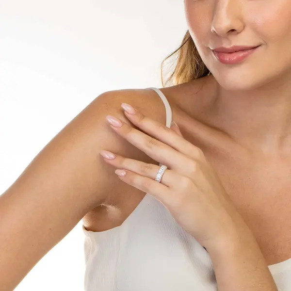 Anel Prata Meia Aliança Diva Zircônias Retangulares