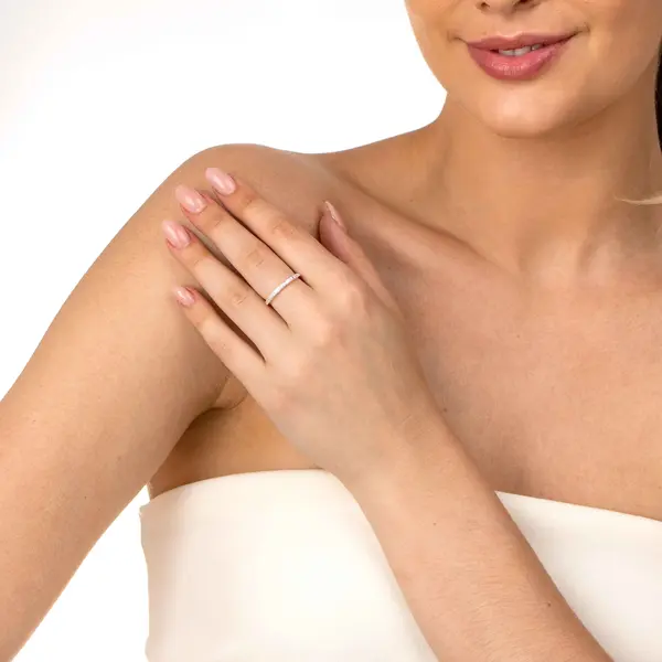 Anel Prata Meia Aliança Zircônias Redondas