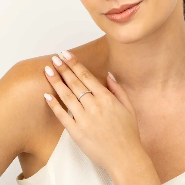 Anel Prata Rodinada Meia Aliança Zircônias Redondas