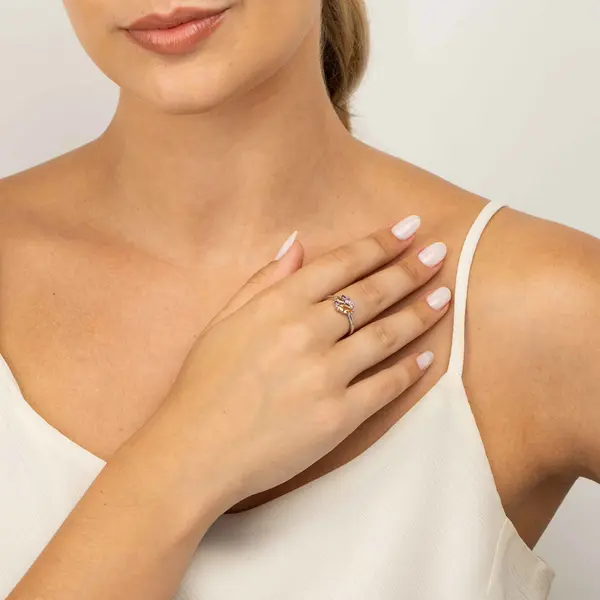 Anel Prata Rodinada Solitário Zircônias Laranjas