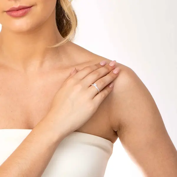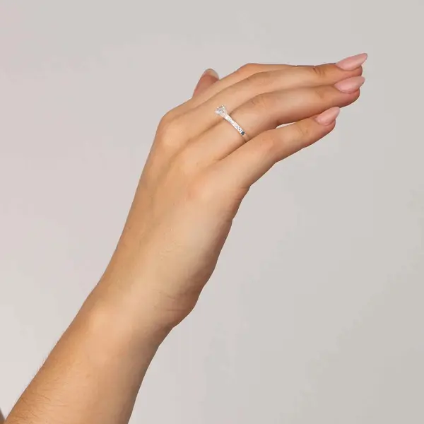 Anel Prata Solitário com Zircônias Laterais e Grande Central