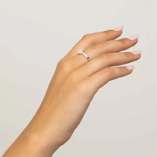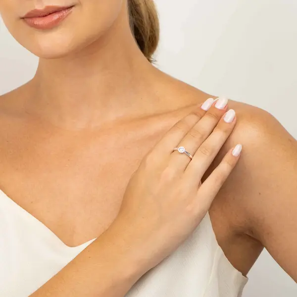 Anel Prata Solitário Cravejado em Zircônias