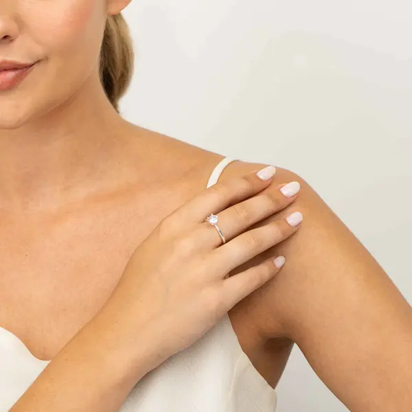 Anel Prata Solitário Zircônia Alta Grande