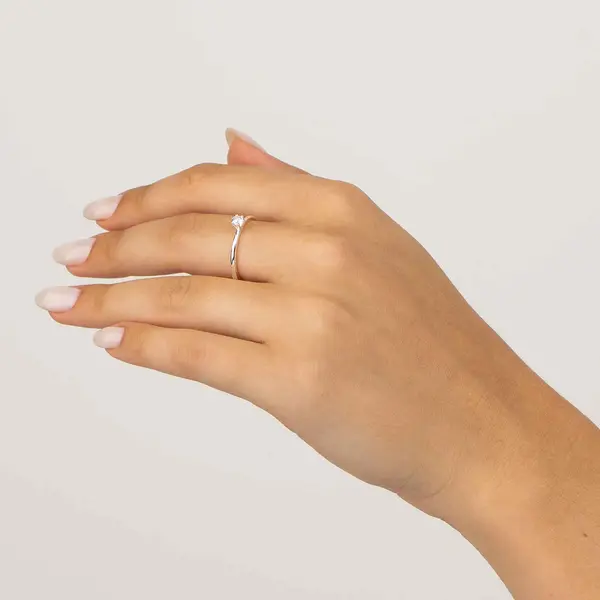 Anel Prata Solitário Zircônia Alta