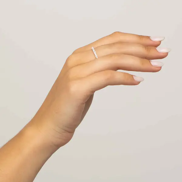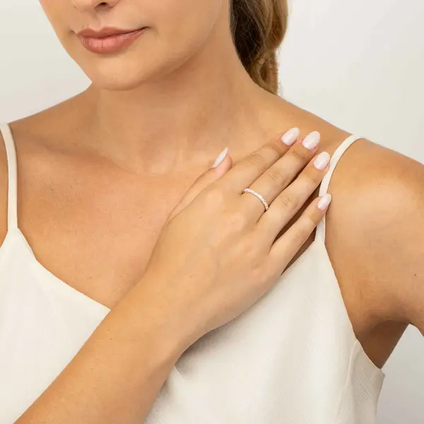 Anel Prata Zircônias Navete