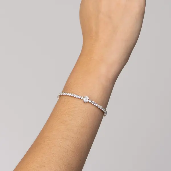 Bracelete Prata Rodinada Riviera Redondas e Zircônia Central