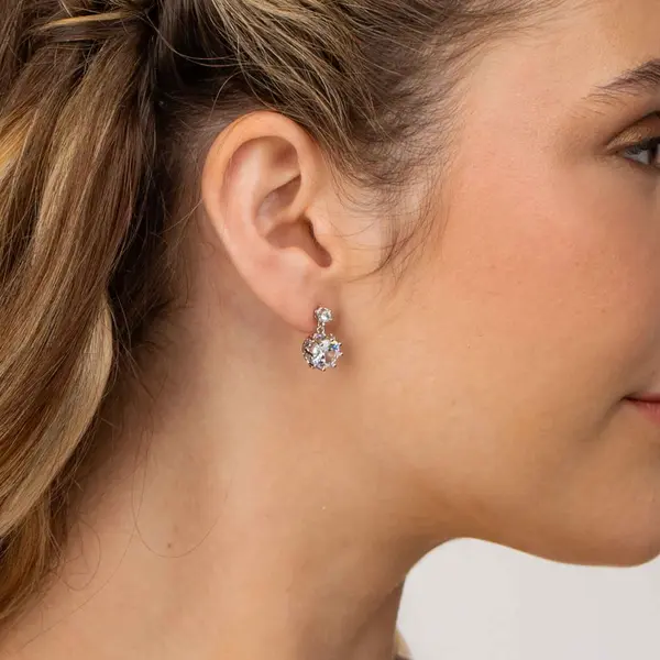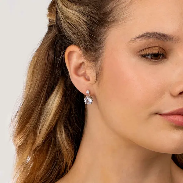 Brinco Banho de Ródio Flor Zircônia Redonda Média
