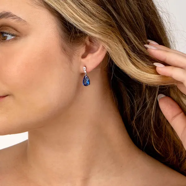 Brinco Banho de Ródio Gota em Zircônia Azul