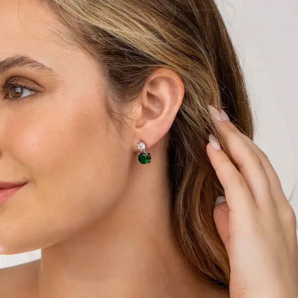 Brinco Banho de Ródio Zircônia Branca e Azul