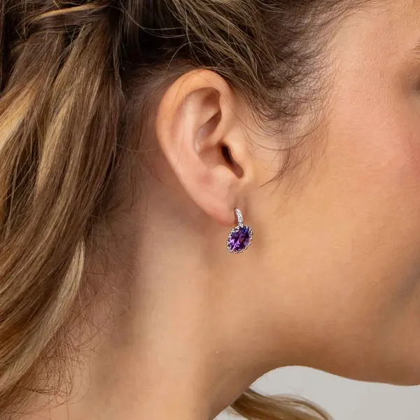 Brinco Banho de Ródio Zircônia Redonda Lilás