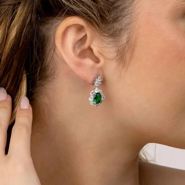 Brinco Banho de Ródio Zircônias Brancas e Central Verde