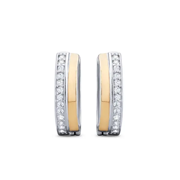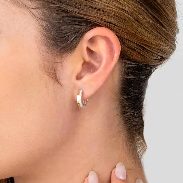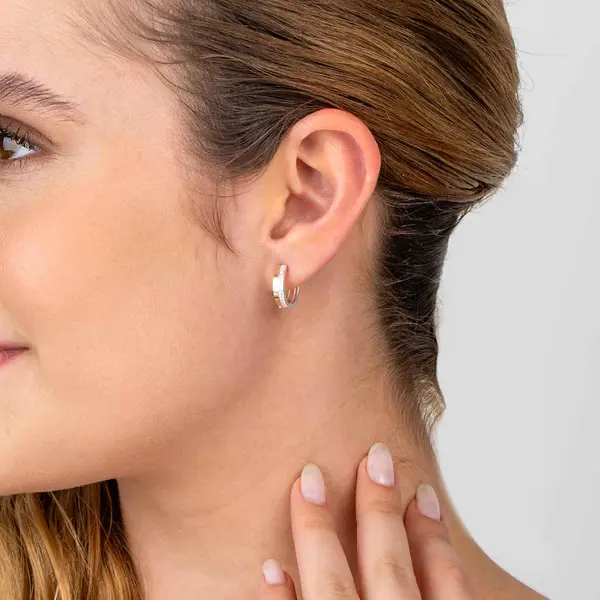 Brinco Prata Argola Click Média com Filete em Ouro 10K e Zircônias