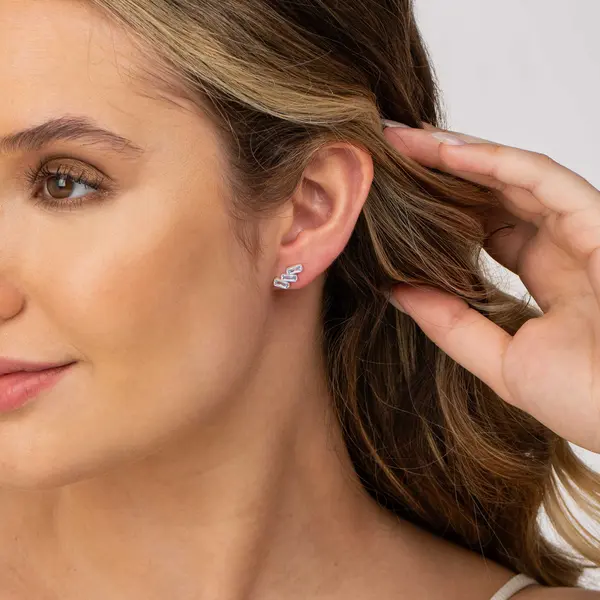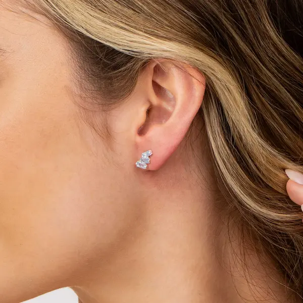 Brinco Prata com Três Zircônias Retangulares