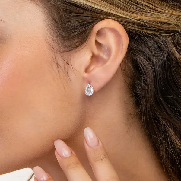 • Brinco Prata Gota Zircônia