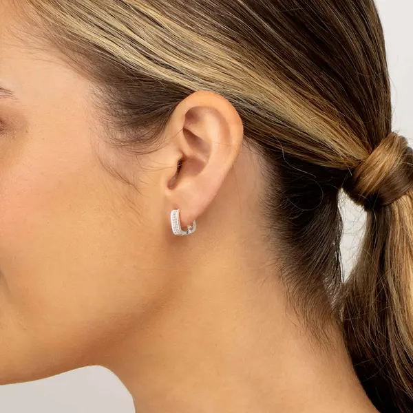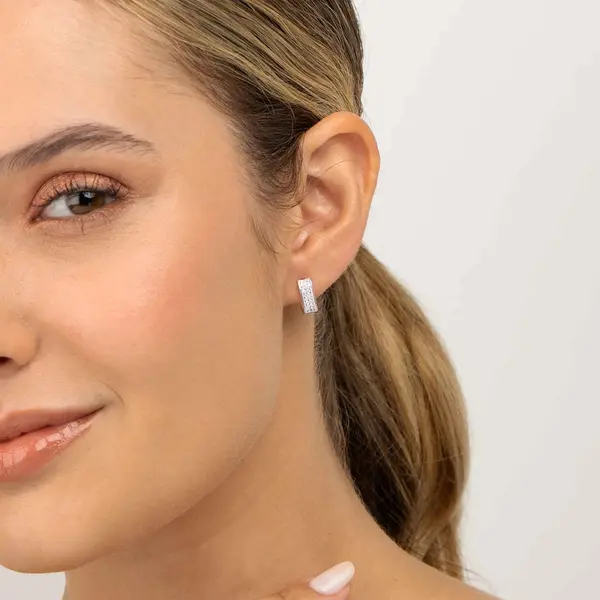 Brinco Prata Leve Argola Click Quadrada Cravejada