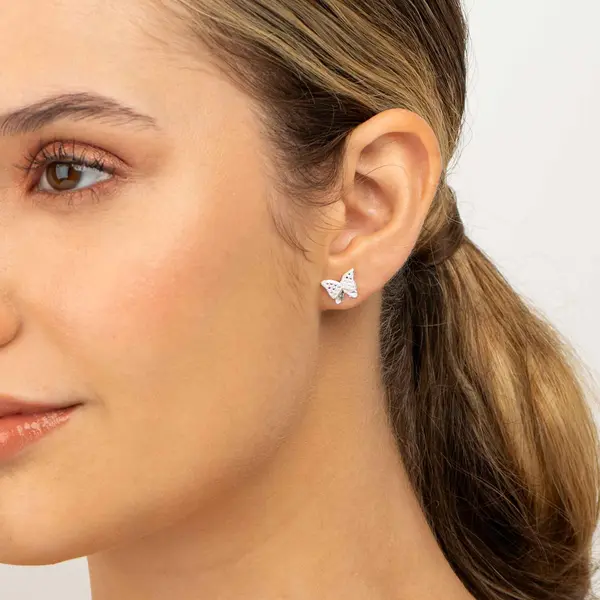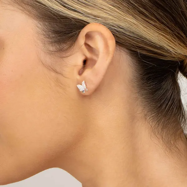 Brinco Prata Leve Borboleta com Zircônias