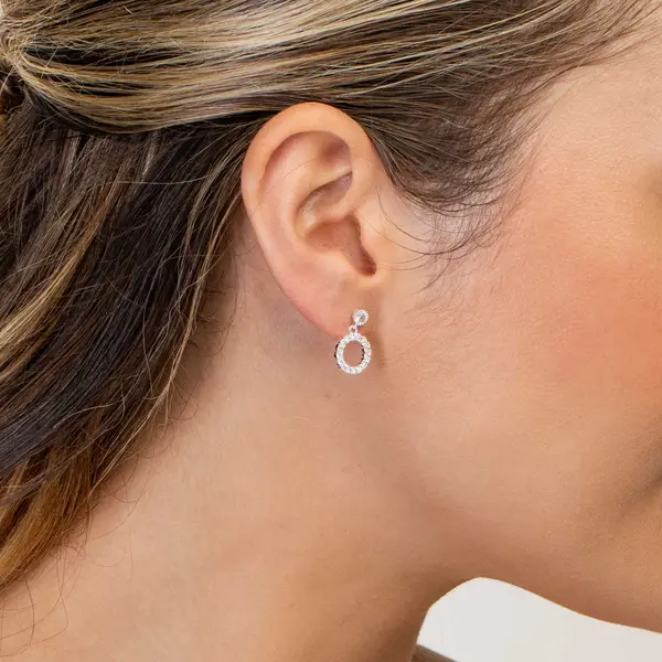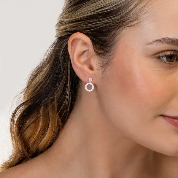 Brinco Prata Leve Círculo Pendente com Zircônias
