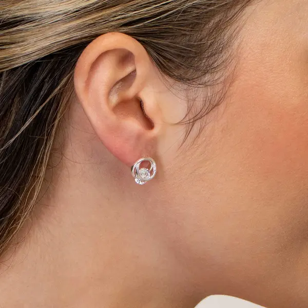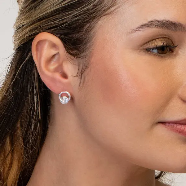 Brinco Prata Leve Dois Círculos com Zircônia
