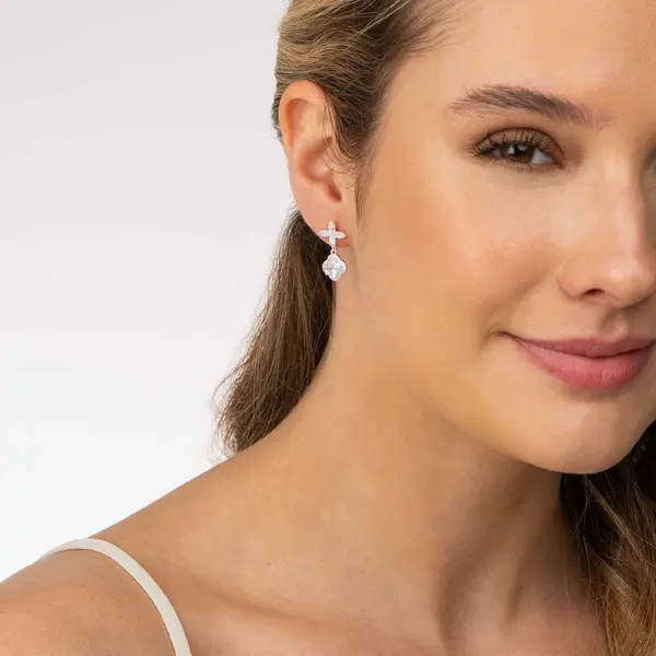 Brinco Prata Leve Flor de Zircônias Pendente