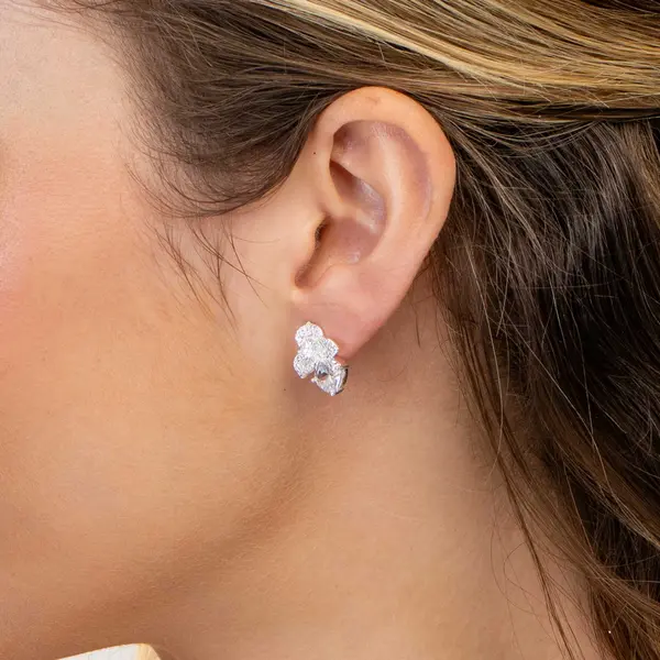 Brinco Prata Leve Folhas com Zircônias