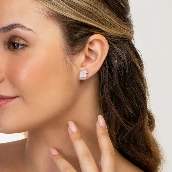 Brinco Prata Leve Orgânico com Zircônia Quadrada