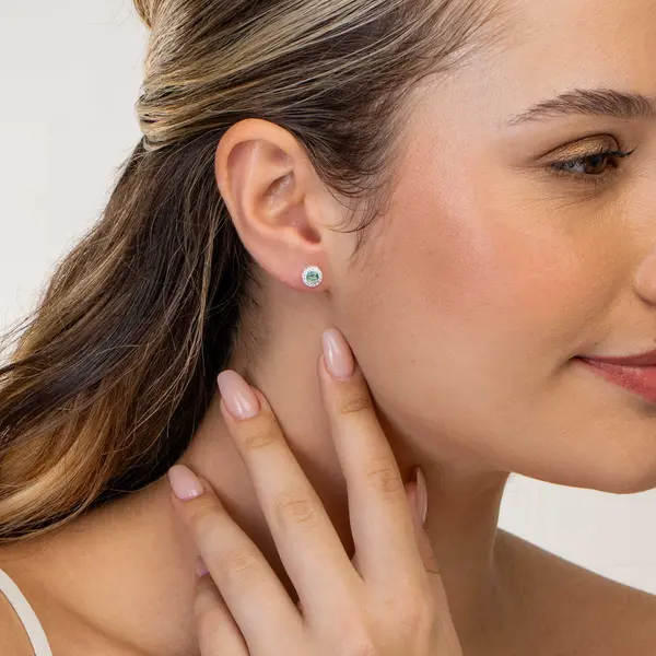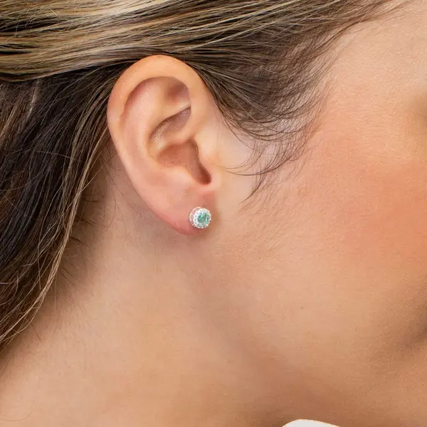 Brinco Prata Leve Redondo Cravejado Verde