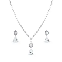 Brinco Prata Leve Sun Hexágono e Gota em Zircônia