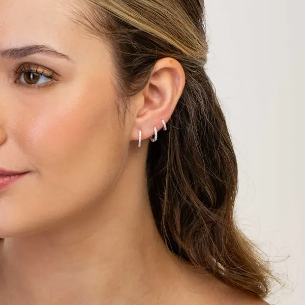 Brinco Prata Leve Trio Argolas Click com Zircônias