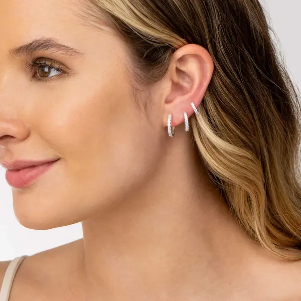 Brinco Prata Leve Trio Argolas com Zircônias Altas