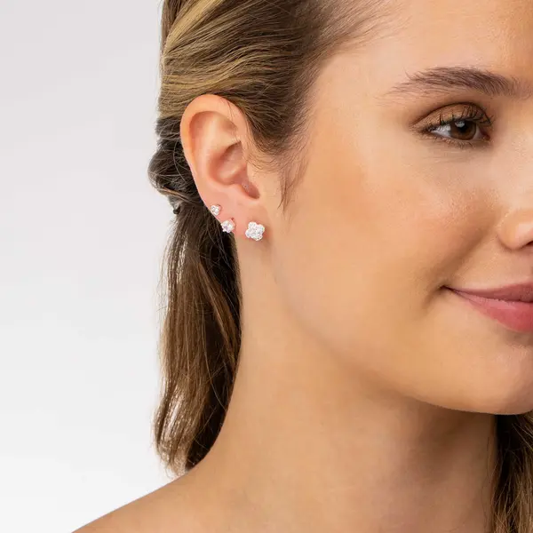 Brinco Prata Leve Trio Flores em Zircônia