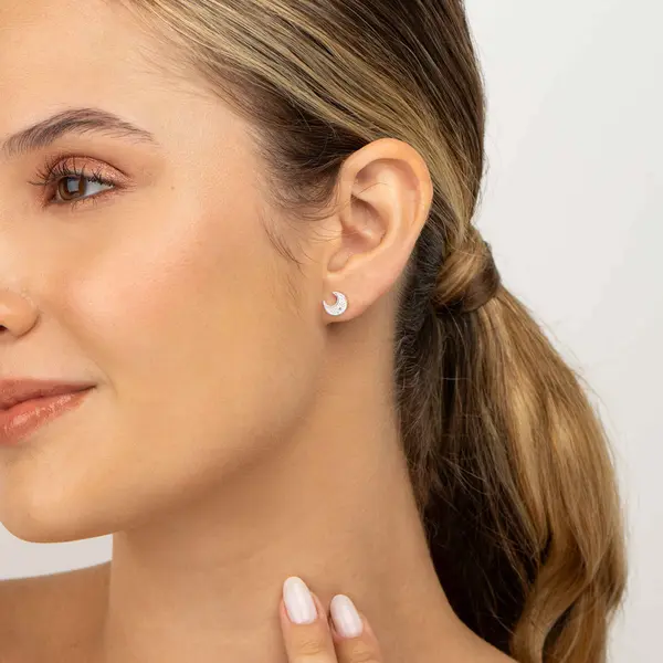 Brinco Prata Lua com Zircônia