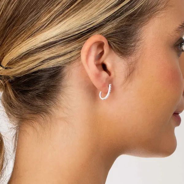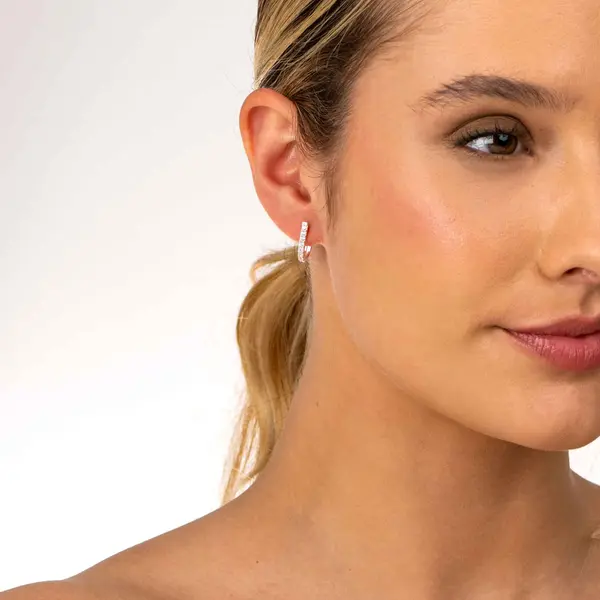 Brinco Prata Meia Argola com Zircônias