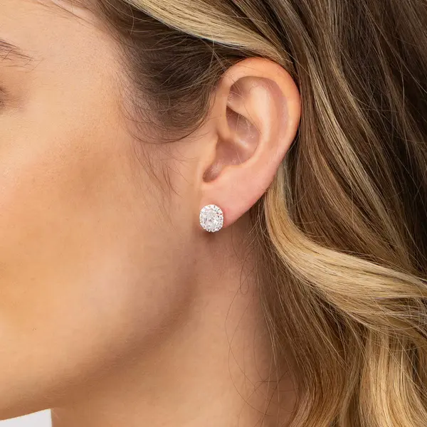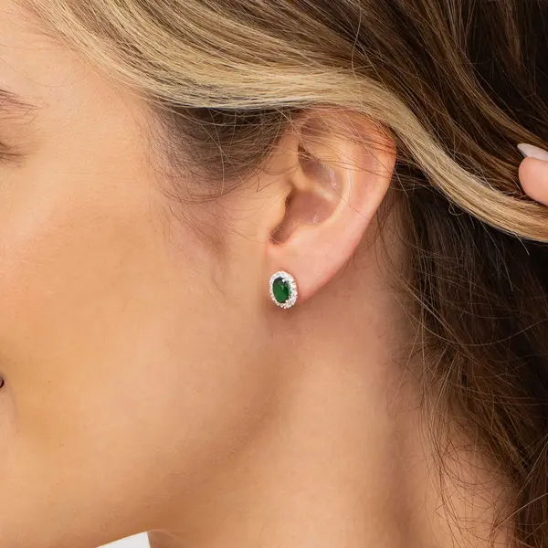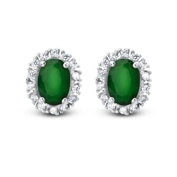 Brinco Prata Oval Com Zircônias
