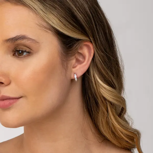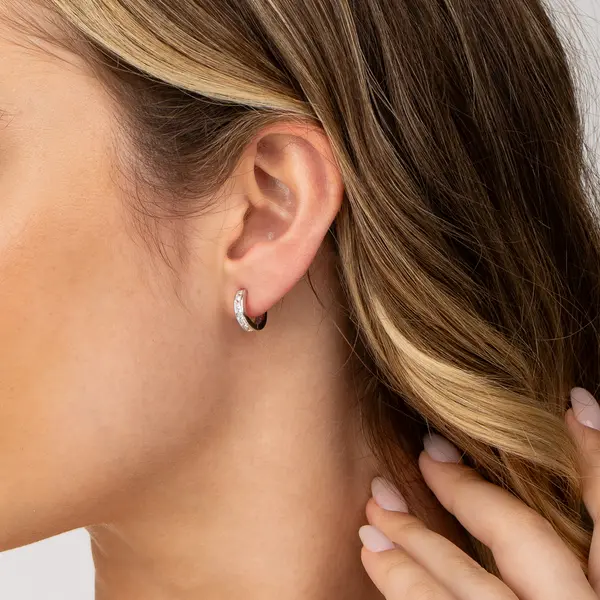 Brinco Prata Rodinada Argola Click com Zircônias Quadradas