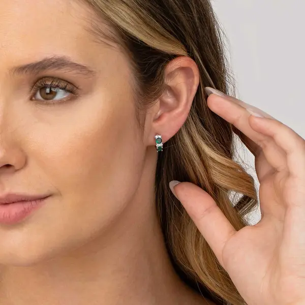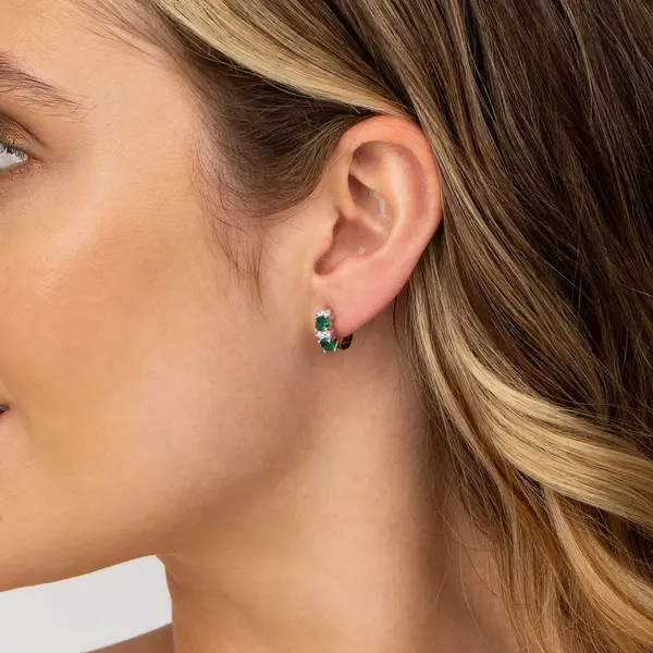 Brinco Prata Rodinada Argola Click Duas Zircônias Verdes