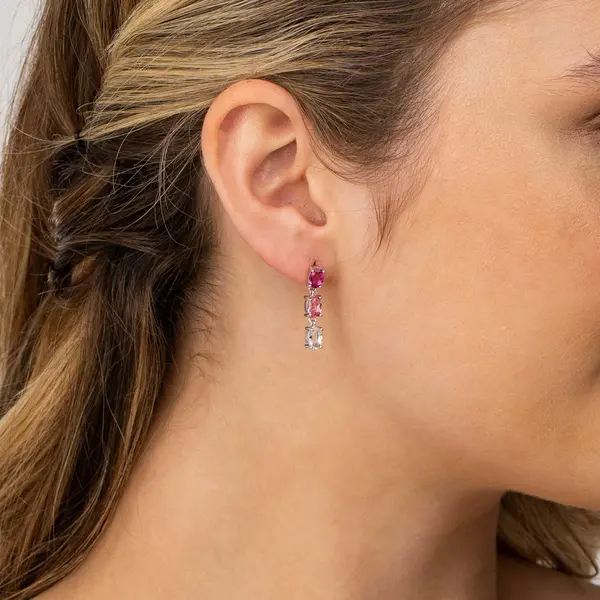 Brinco Prata Rodinada Clássico Retangular Zircônia Azul