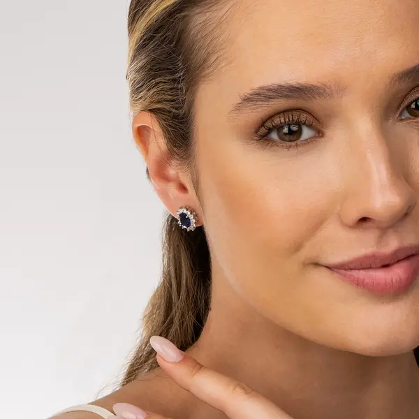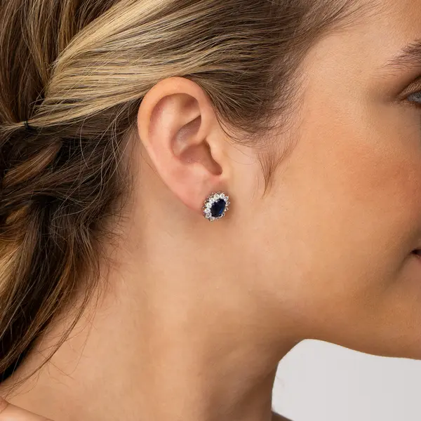 Brinco Prata Rodinada Clássico Zircônia Azul Médio