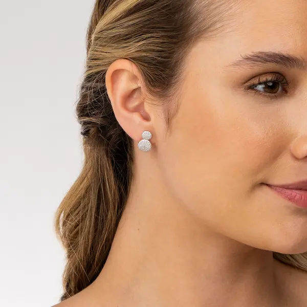 Brinco Prata Rodinada Dois Círculos Cravejados