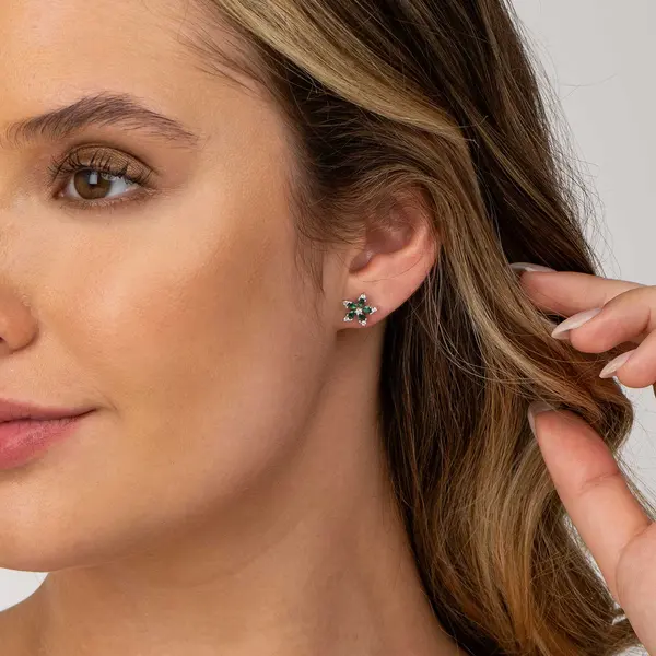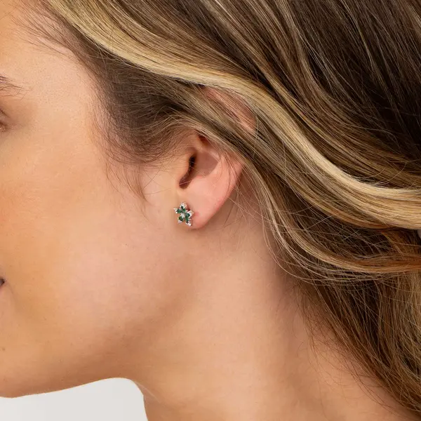 Brinco Prata Rodinada Flor com Zircônias Verdes