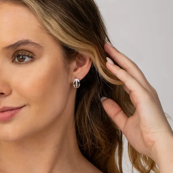 Brinco Prata Rodinada Meia Argola com Zircônias