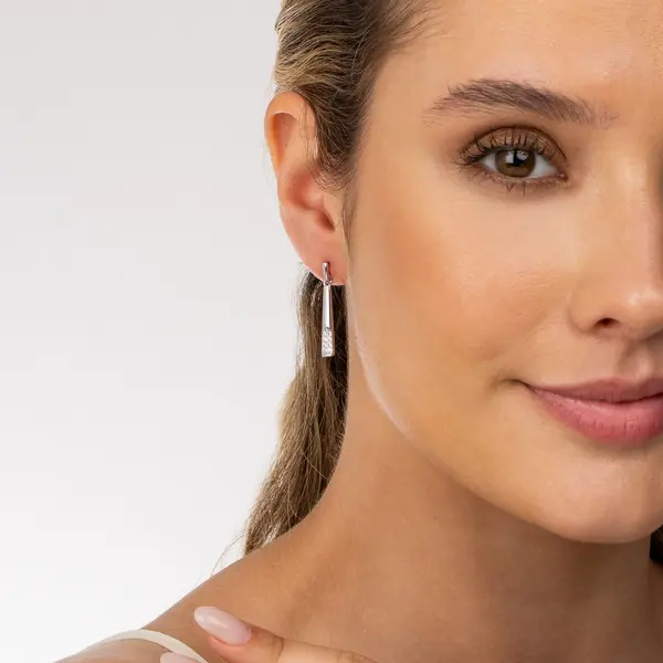 Brinco Prata Rodinada Pendente Liso com Zircônias na Ponta