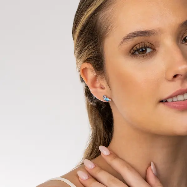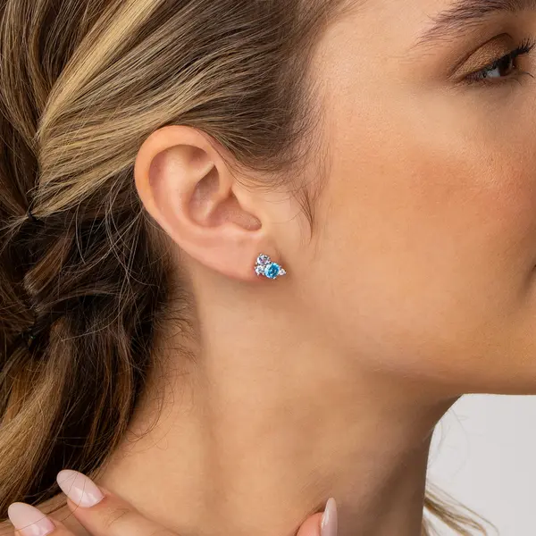 Brinco Prata Rodinada Três Zircônias Azuis