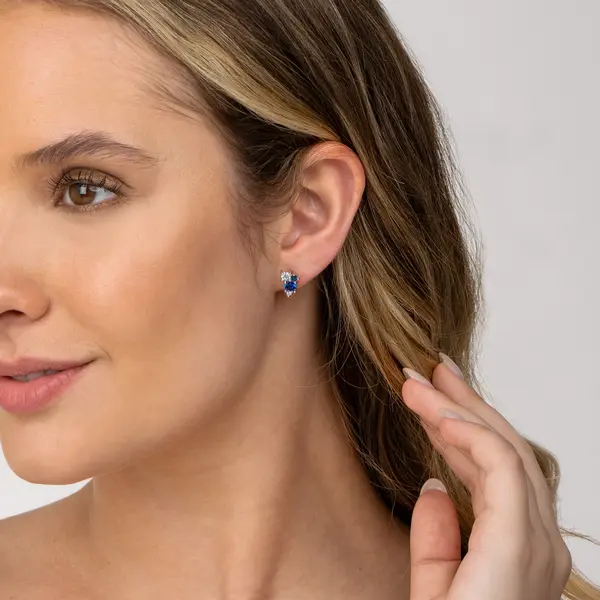 Brinco Prata Rodinada Três Zircônias Redondas Azuis