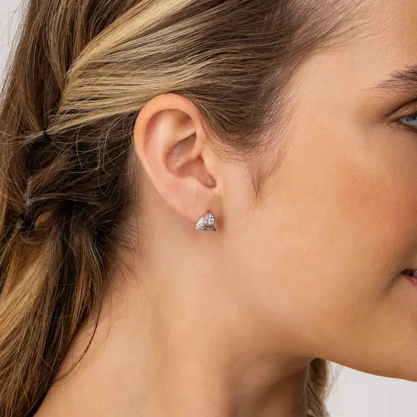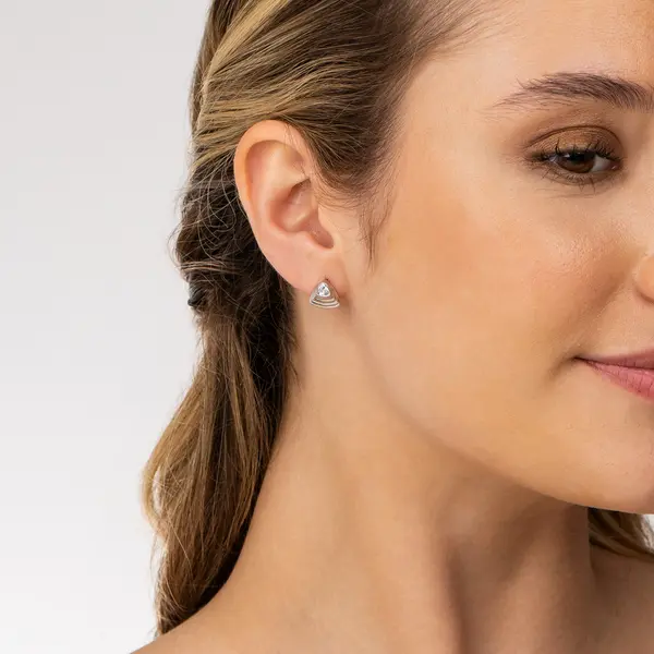 Brinco Prata Rodinada Triângulos Sobrepostos com Zircônia
