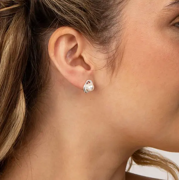 Brinco Prata Zircônias e Pérola Central