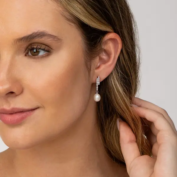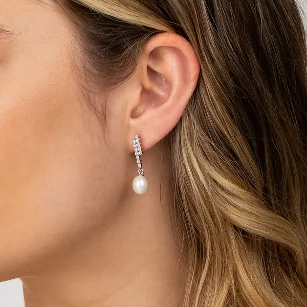 Brinco Prata Rodinada Zircônias e Pérola