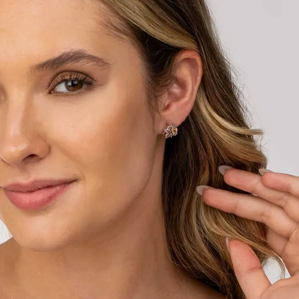 Brinco Prata Rodinada Zircônias Rosas e Laranjas